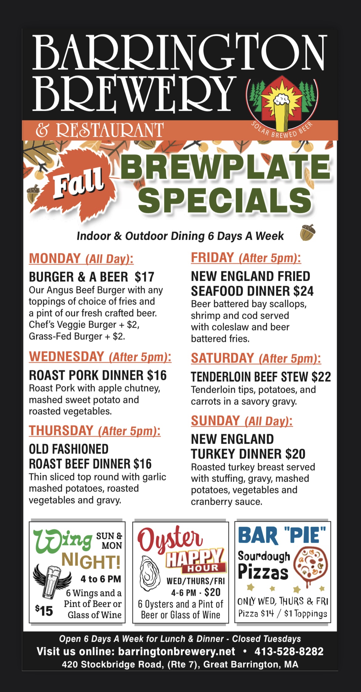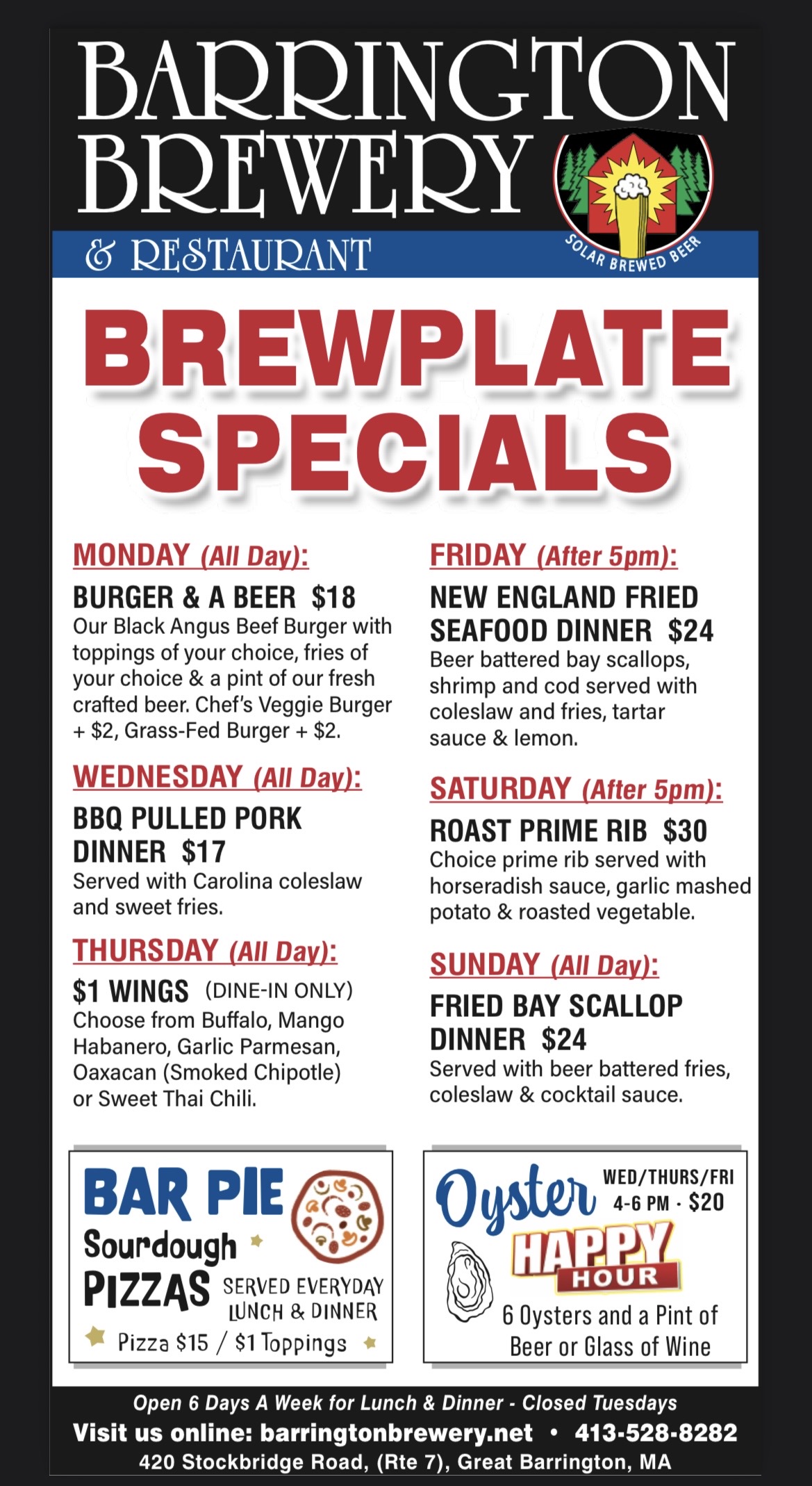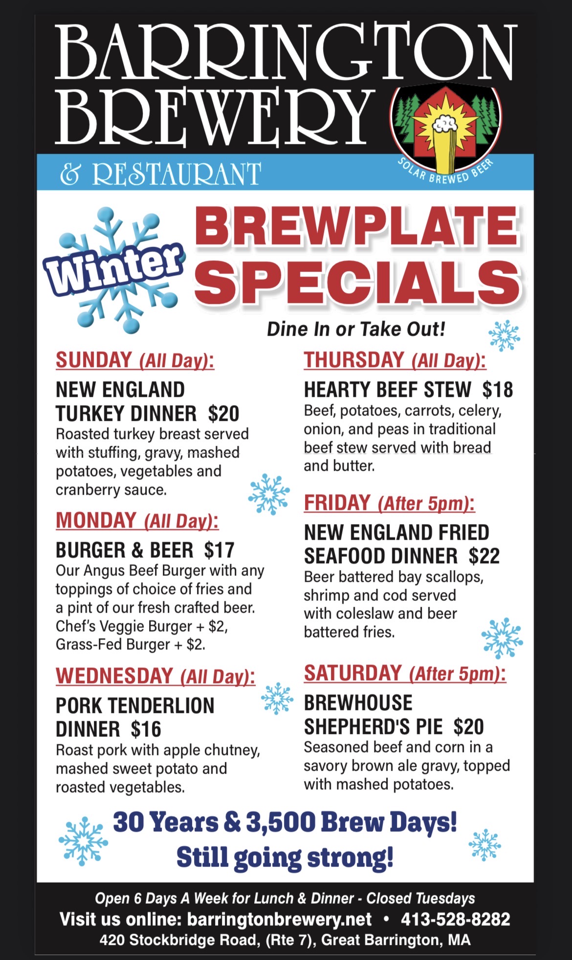 Serving our own Barn Brewed Beer and food made from scratch